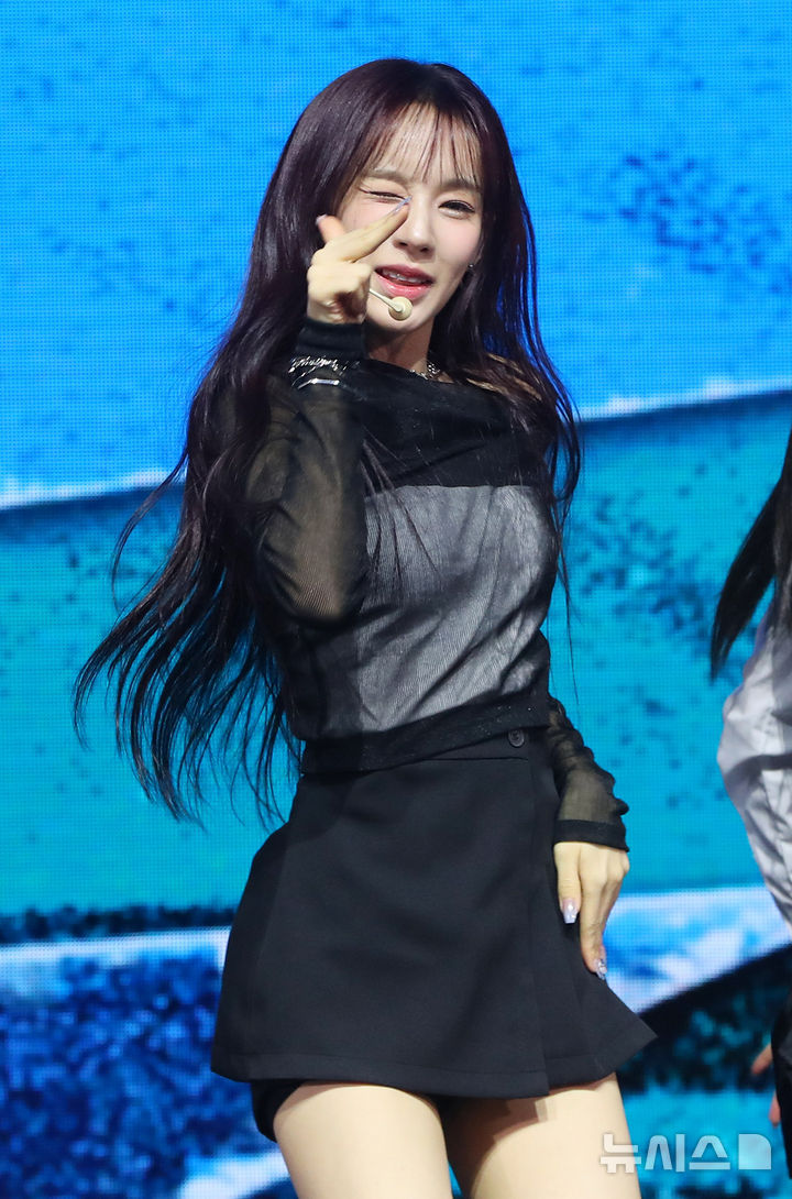 [서울=뉴시스] 김혜진 기자 = 그룹 이즈나 유사랑이 25일 오후 서울 광진구 광장동 예스24라이브홀에서 열린 izna(이즈나) 첫 번째 미니앨범 'N/a' 발매 기념 데뷔 쇼케이스에서 무대를 선보이고 있다.