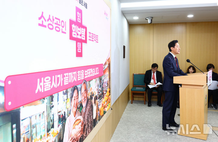 [서울=뉴시스] 황준선 기자 = 오세훈 서울시장이 26일 오전 서울 중구 서울시청에서 소상공인 힘보탬 프로젝트 기자설명회를 하고 있다. 2024.11.26. [email protected]