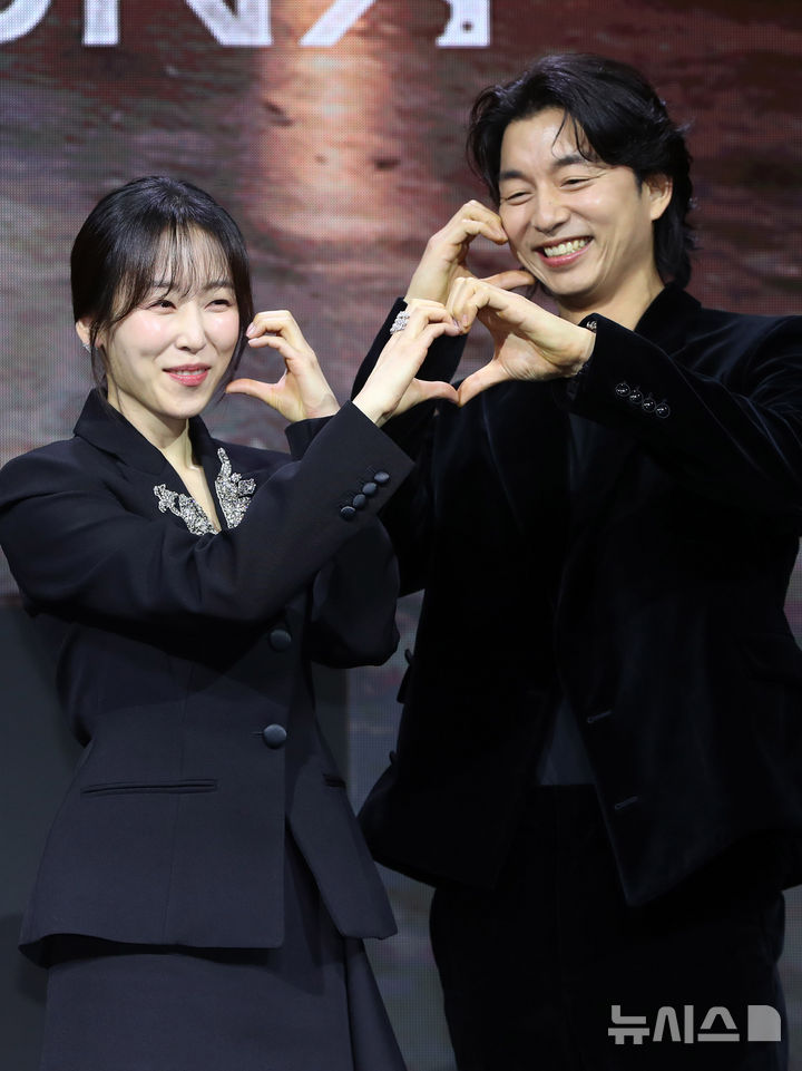 [서울=뉴시스] 김혜진 기자 = 배우 서현진(왼쪽), 공유가 26일 오전 서울 강남구 라움아트센터에서 열린 넷플릭스 시리즈 '트렁크' 제작발표회에서 포즈를 취하고 있다.
