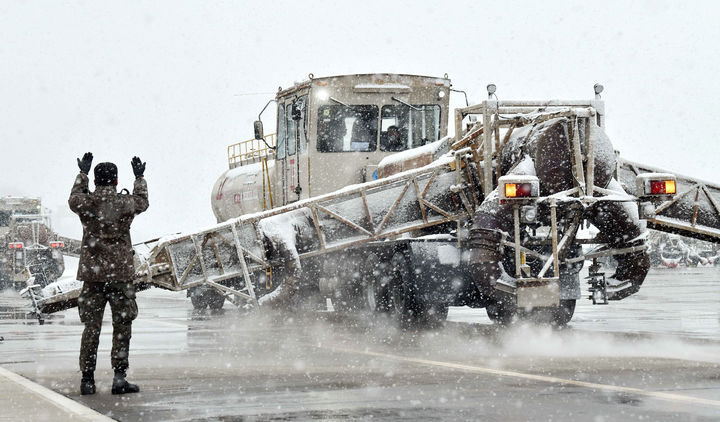 공군, 특수 제설 차량으로 제설 작업중