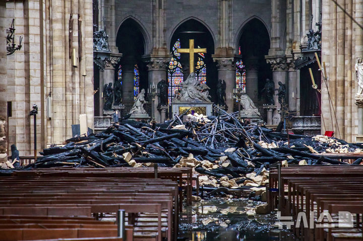 5년여 전 화재로 무너진 파리 노트르담 대성당 내부 모습