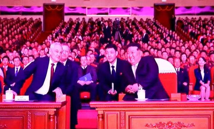 김정은 북한 국무위원장, 러시아 군사대표단 환영하는 공연 관람