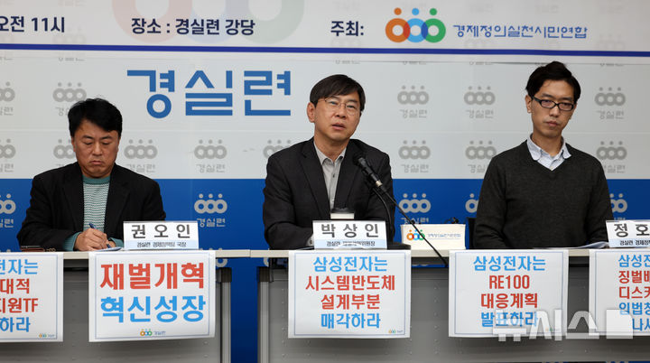 [서울=뉴시스] 김선웅 기자 = 박상인 경실련 재벌개혁위원장(서울대 행정대학원 교수)이 2일 서울 종로구 경제정의실천시민연합에서 열린 삼성전자 위기와 사장단 인사의 문제 및 개혁방안 제안 기자회견에서 발언하고 있다. 2024.12.02. [email protected]