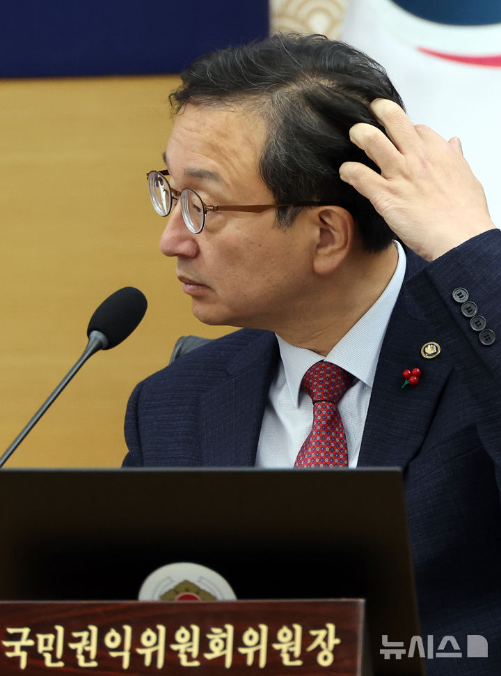 [세종=뉴시스] 강종민 기자 = 정승윤 국민권익위원회 부위원장이 3일 세종시 정부세종청사에서 열린 국무회의에 참석, 머리를 만지고 있다. 2024.12.03. [email protected]