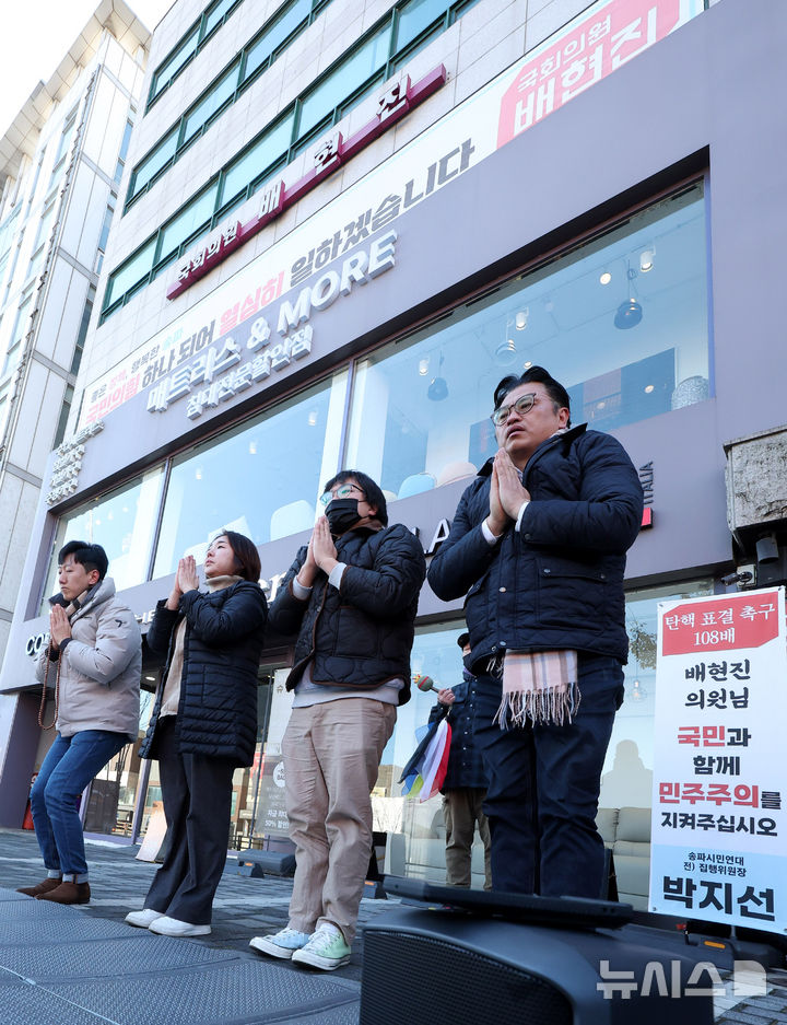 배현진 의원실 앞 대통령 탄핵 표결 촉구 108배