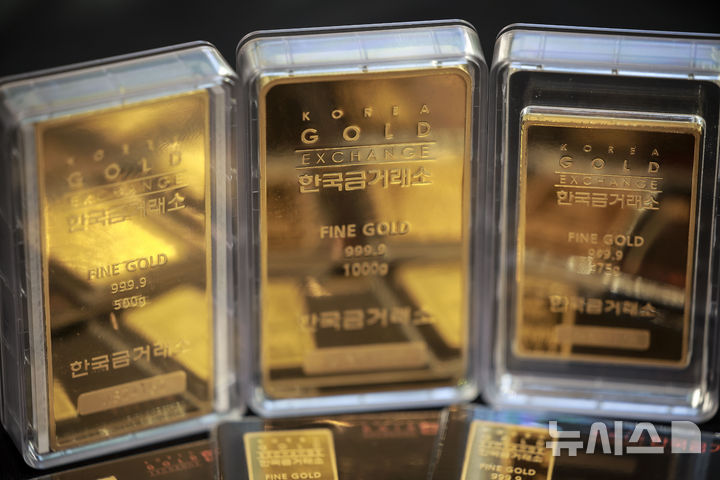 [서울=뉴시스] 정병혁 기자 = 9일 서울 종로구 한국금거래소에 금 제품이 놓여 있다. 탄핵 무산 등의 이유로 정치, 경제적 불안정성이 커지면서 안전자산인 금값이 오르고 있다. 이날 오전 10시 기준 한국거래소 KRX금시장에서 1㎏짜리 금 현물의 1g 가격은 전 거래일 대비 650원(0.63%) 오른 12만2910원을 보이고 있다. 2024.12.09. [email protected]