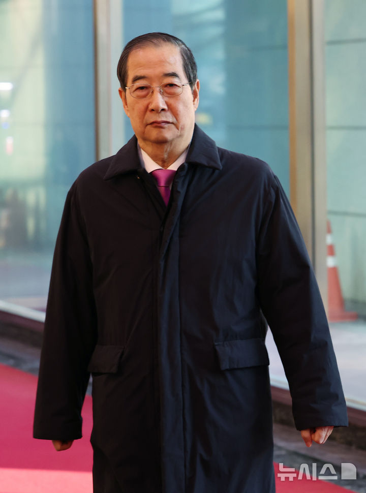 [서울=뉴시스] 배훈식 기자 = 국회 법사위를 통과한 '상설특검수사요구안'에 내란 공범으로 적시된 한덕수 국무총리가 10일 오전 서울 종로구 정부서울청사로 출근하고 있다. 2024.12.10. [email protected]