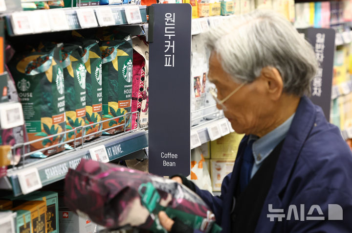 [서울=뉴시스] 황준선 기자 = 11일 서울 시내 대형마트를 찾은 시민이 커피 원두를 살펴보고 있다.