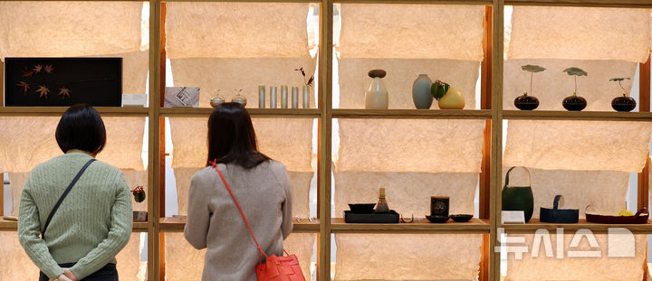[서울=뉴시스] 추상철 기자 = 12일 오후 서울 강남구 코엑스에서 열린 '2024 공예트렌드페어'에서 관람객이 공예품을 살펴보고 있다. 2024.12.12. [email protected]