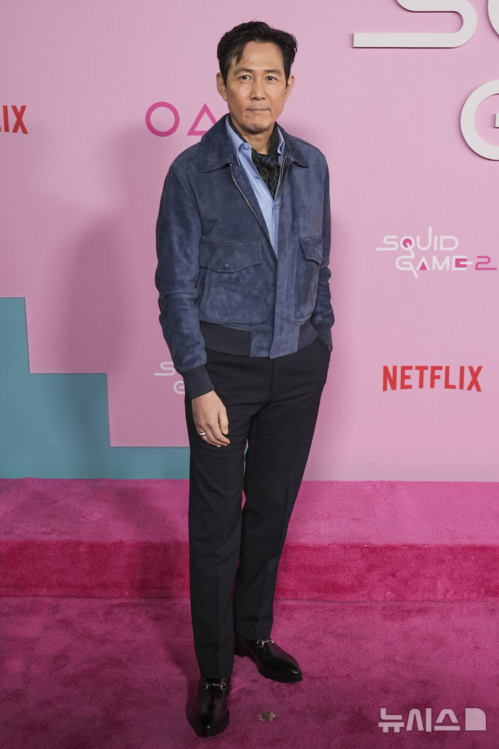 [로스앤젤레스=AP/뉴시스] 배우 이정재가 12일(현지시각) 미 캘리포니아주 로스앤젤레스의 시티 칼리지에서 열린 '오징어 게임' 시즌 2 시사회장에 도착해 사진 촬영에 응하고 있다. 2024.12.13.