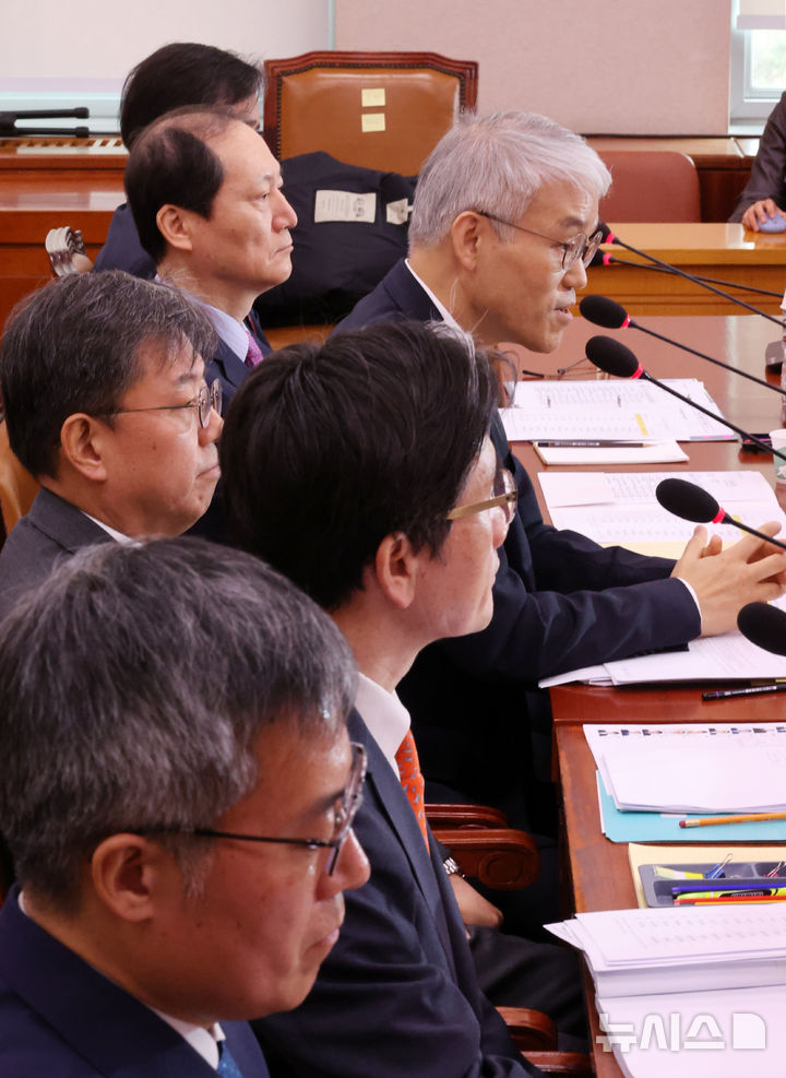 [서울=뉴시스] 조성우 기자 = 천대엽(오른쪽 위) 법원행정처장이 17일 오후 서울 여의도 국회에서 열린 법제사법위원회의 12.3 비상계엄 사태 현안질의에서 의원 질의에 답변하고 있다. 2024.12.17. [email protected]