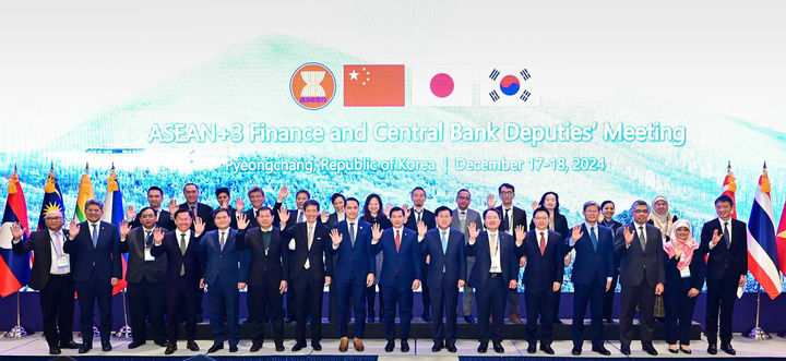 [서울=뉴시스] 김금보 기자 = 최지영 기획재정부 국제경제관리관이 지난 17일 강원도 평창에서 열린 '아세안+3(한·일·중) 재무차관 및 중앙은행 부총재 회의'에서 참석자들과 기념촬영을 하고 있다. (사진=기획재정부 제공) 2024.12.18. [email protected] *재판매 및 DB 금지