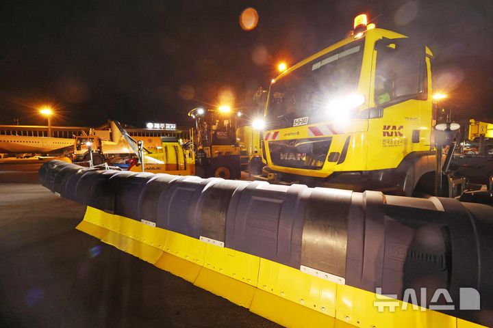 이날 훈련에는 견인식 제설차, 일체식 제설차, 액상제설제 살포차, 고속송풍기 등 총 10대의 대형 제설장비가 동원됐다. 동절기에도 가장 많은 여객이 이용하는 제주국제공항은 2016년 기록적인 폭설로 인한 비정상운영 이후 제설장비를 대폭 확충하고 체계적인 대응책을 마련해 왔으며, 현재 인천국제공항을 제외한 국내공항 중 최대 규모의 제설장비를 보유하고 있다. 2024.12.19. [email protected]