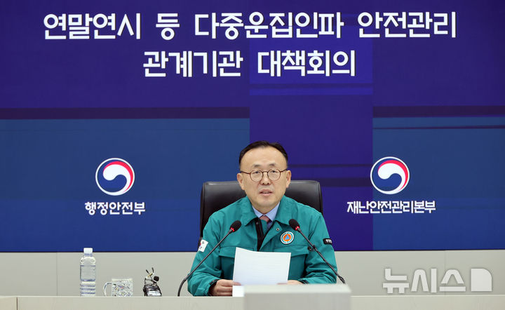 [세종=뉴시스] 강종민 기자 = 이한경 행정안전부 재난안전관리본부장이 20일 세종시 정부세종청사 중앙재난안전상황실에서 열린 연말연시 등 다중운집인파 안전관리 관계기관 대책회의에서 발언하고 있다. 2024.12.20. [email protected]