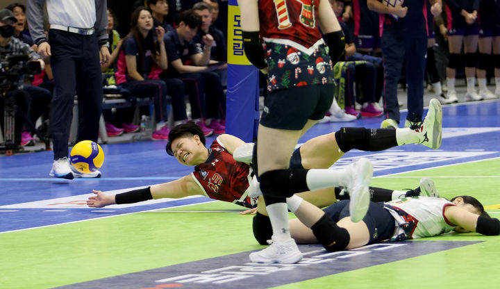 [서울=뉴시스] 이영환 기자 = 20일 경기 수원실내체육관에서 열린 2024-2025 V리그 흥국생명과 현대건설의 경기, 현대건설 위파위가 디그를 하고 있다. (사진=현대건설 배구단 제공) 2024.12.20. [email protected] *재판매 및 DB 금지