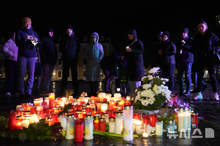[마그데부르크=AP/뉴시스] 21일(현지시각) 독일 마그데부르크 대성당 밖에서 추도 미사를 마친 사람들이 크리스마스 마켓 차량 돌진 희생자들을 추모하며 촛불을 밝히고 있다. 전날 발생한 이 테러로 어린이 포함 5명이 숨지고 200여 명이 다쳤다. 2024.12.22.