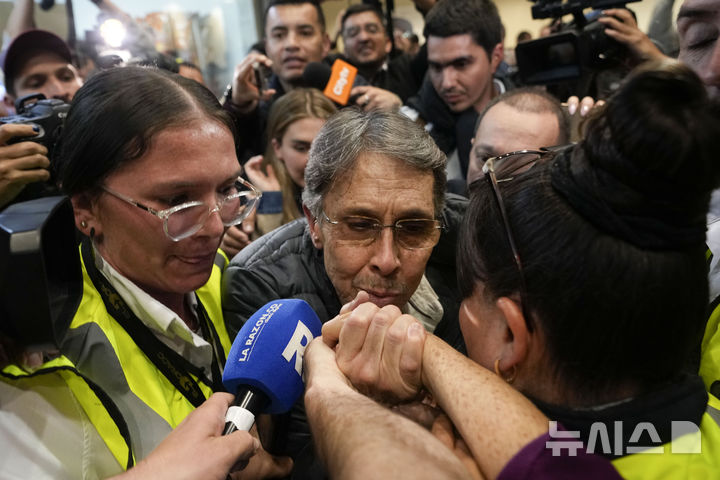 [보고타=AP/뉴시스] 세계 최대의 마약 밀매 조직 메데인 카르텔의 파비오 오초아(67, 가운데)가 23일(현지시각) 미국에서 추방된 후 콜롬비아 보고타의 엘도라도 공항에 도착해 친지의 손에 입 맞추고 있다. 오초아는 미국에서 30년 형을 선고받고 25년을 복역한 뒤 본국으로 추방됐다. 2024.02.24.