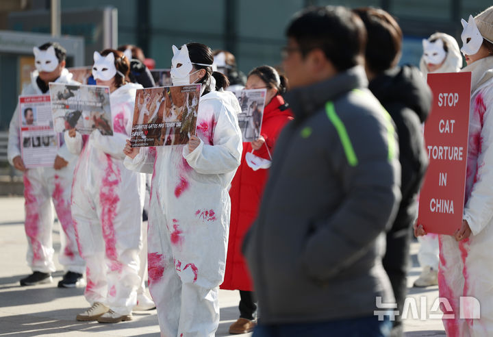 이들은 '중국의 고양이고문살해단으로 인해 500마리 이상의 고양이가 고문을 당하고 살해된 것으로 추정된다'며 '중국 정부가 동물보호법을 즉각 제정하고, 동물 학대자에게 엄중한 처벌을 내릴 것'을 촉구했다. 2024.12.24. [email protected]