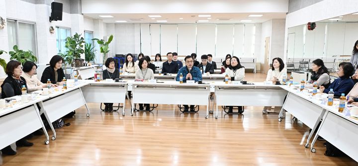 사회복지 종사자들과 간담회 하는 최상목 부총리