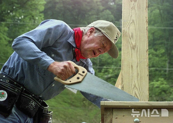 [플레인스=AP/뉴시스] 지미 카터 전 미국 대통령(39대)이 조지아주 플레인스 자택에서 별세했다. 향년 100세. 역대 미 대통령 중 최장수 기록을 세운 카터 전 대통령은 퇴임 후 다양한 평화·인권 활동으로 ‘가장 훌륭한 전직 대통령’이란 평가를 받으며 2002년에는 '노벨 평화상'을 받았다. 사진은 카터 전 대통령이 1997년 6월 16일 켄터키주 파이크빌에서 해비타트 '사랑의 집 짓기' 봉사 활동을 펼치는 모습. 2024.12.30.