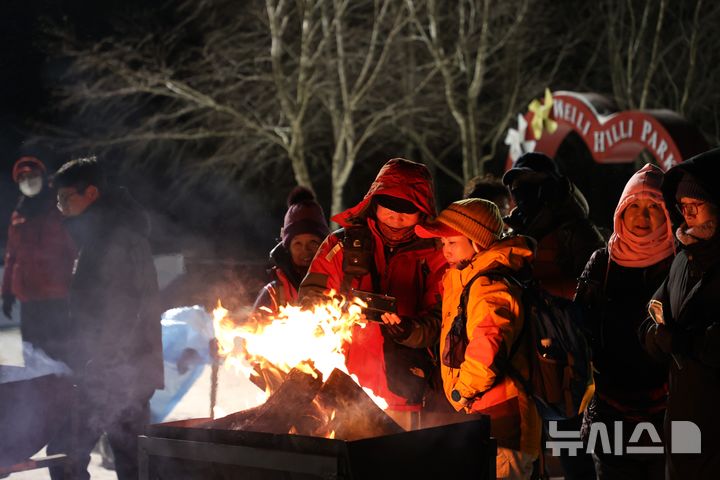 [횡성=뉴시스] 이덕화 기자 = 을사년(乙巳年) 새해 첫날인 1일 강원 횡성군 웰리힐리파크 야외 특설무대 앞에서 관광객들이 올해 희망을 담은 소원지를 불태우며 하늘로 날려 보내고 있다. 2025.01.01. [email protected]