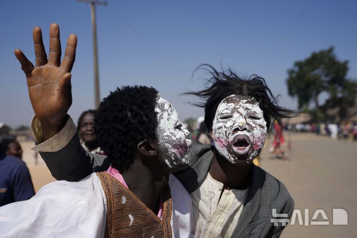 [브왕=AP/뉴시스] 1일(현지시각) 나이지리아 중부 브왕에서 베롬 부족의 새해맞이 축제가 열려 얼굴에 흰색 칠 한 사람들이 새해를 축하하고 있다. 2025.01.02.