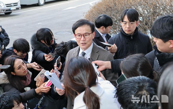 [서울=뉴시스] 이영환 기자 = 윤석열 대통령의 법률대리인인 배진한 변호사가 3일 서울 종로구 헌법재판소 소심판정에서 열린 윤석열 대통령 탄핵 사건에 대한 2차 변론준비기일에 출석하며 취재진 질문에 답하고 있다. (공동취재) 2025.01.03. [email protected]