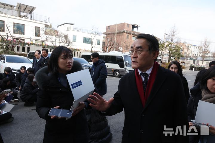 [서울=뉴시스] 이영환 기자 = 윤석열 대통령 측 변호인단인 배보윤 변호사가 3일 서울 종로구 헌법재판소 소심판정에서 열리는 윤석열 대통령 탄핵심판 사건 2차 변론준비기일에 출석하며 취재진 질문에 답하고 있다. (공동취재) 2025.01.03. [email protected]