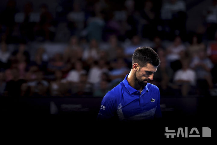 [브리즈번=AP/뉴시스] 노바크 조코비치(7위·세르비아)가 3일(현지시각) 호주 브리즈번에서 열린 남자프로테니스(ATP) 투어 브리즈번 인터내셔널 8강전에서 라일리 오펠카(293위·미국)와 경기 중 고개를 숙이고 있다. 통산 100번째 우승을 노리던 조코비치는 오펠카에게 0-2(6-7 3-6)로 완패했다. 2025.01.04.