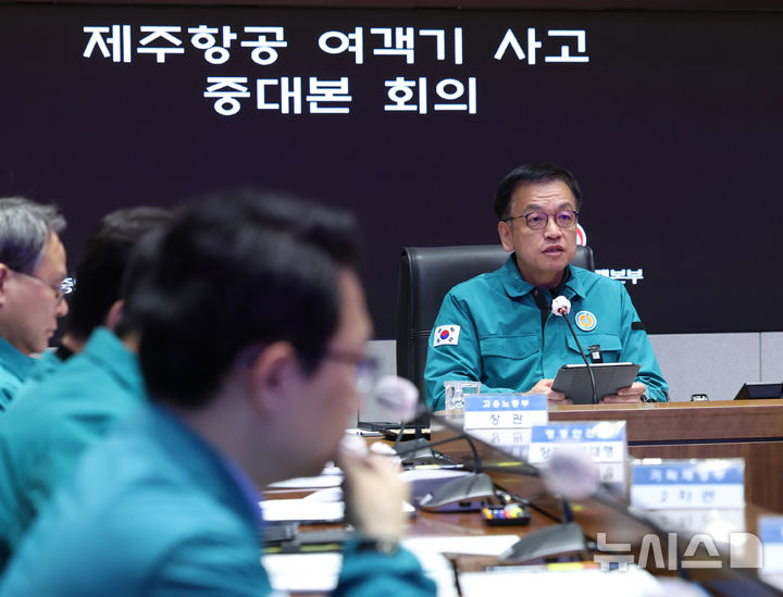 [서울=뉴시스] 조수정 기자 = 최상목 대통령 권한대행 부총리 겸 기획재정부 장관이 4일 오전 서울 종로구 정부서울청사 중앙재난안전대책본부에서 무안 제주항공 여객기 사고 대책회의를 주재하며 발언하고 있다. 2025.01.04. [email protected]