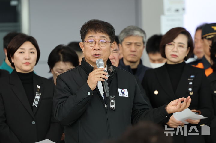 [무안=뉴시스] 김근수 기자 = 박상우 국토교통부 장관이 4일 오전 전남 무안군 무안국제공항에서 열린 국토교통부 중앙사고수습대책본부의 유가족 대상 브리핑에서 발언하고 있다. 2025.01.04. [email protected]