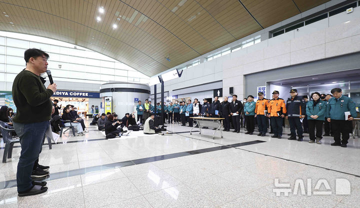 [무안=뉴시스] 김근수 기자 = 제주항공 여객기 참사 유가족 대표단이 5일 오전 전남 무안군 무안국제공항에서 정부 중앙사고수습본부 대표단에게 감사 인사를 하고 있다. 2025.01.05. [email protected]