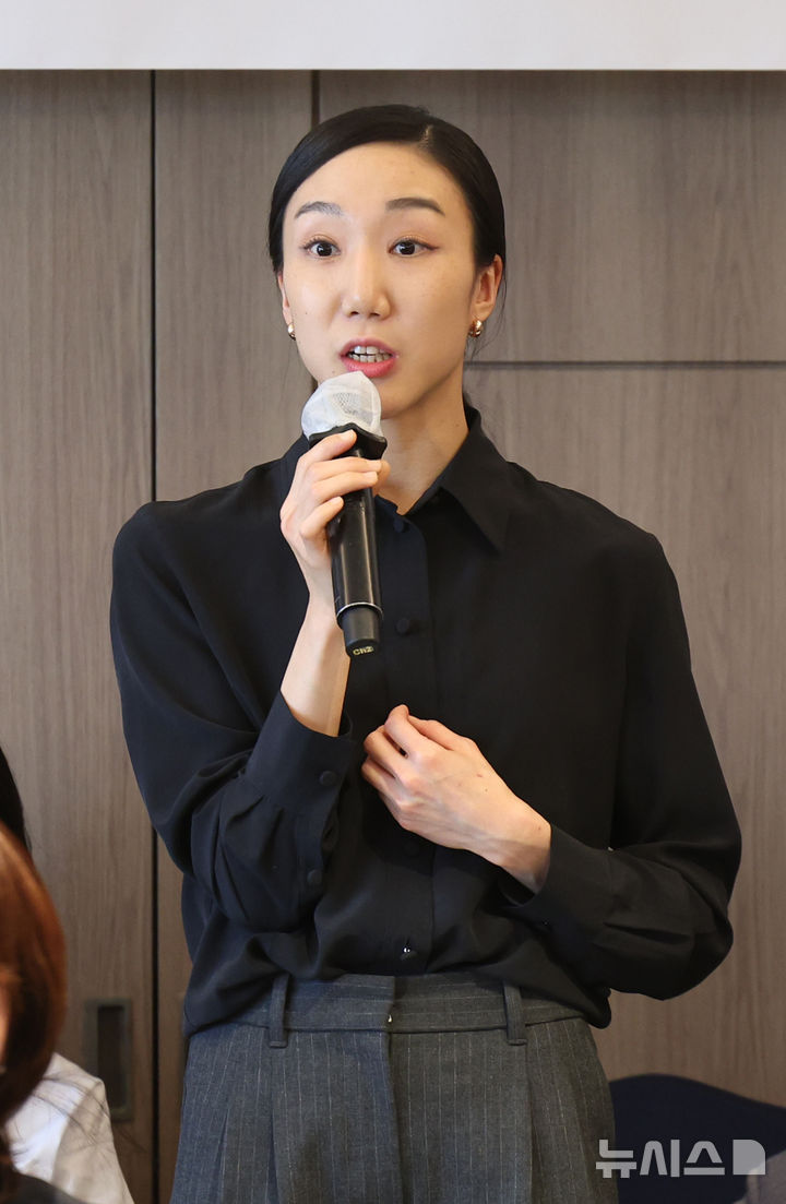 [서울=뉴시스] 김금보 기자 = 채지영 미국보스턴발레단 수석무용수가 8일 서울 중구 롯데호텔 샤롯데스위트에서 열린 '발레의 별빛, 글로벌 발레스타 초청 갈라공연' 기자간담회에서 인사말을 하고 있다. 2025.01.08. [email protected]