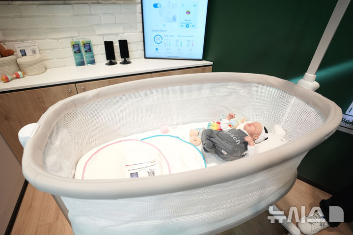 [라스베이거스=AP/뉴시스] 8일(현지시각) 미 네바다주 라스베이거스에서 열리고 있는 세계 최대 전자·IT 박람회 'CES 2025' 보쉬 전시관에 스마트 아기 침대 '레볼 스마트 크립'이 전시되고 있다. 이 침대는 아기의 수면을 모니터링하고, 아기의 움직임을 감지해 편안한 수면 환경을 제공하는 기능이 있다. 또한, 스마트폰 앱을 통해 아기의 수면 상태를 확인하고, 침대의 각도나 상태를 조절할 수 있는 기능도 제공한다. 2025.01.09.