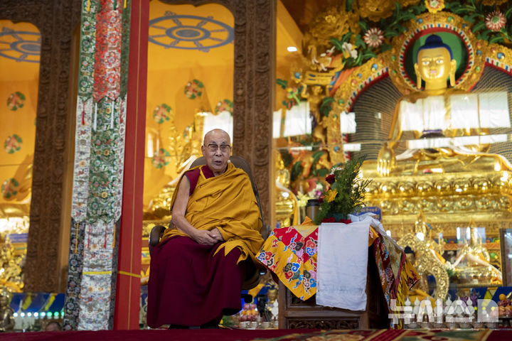 [빌라쿠피=AP/뉴시스] 티베트 영적 지도자 달라이 라마가 9일(현지시각) 인도 빌라쿠피의 한 수도원에서 중국 티베트 자치구 지진 피해자들을 위한 기도회를 인도하고 있다. 2025.01.09.