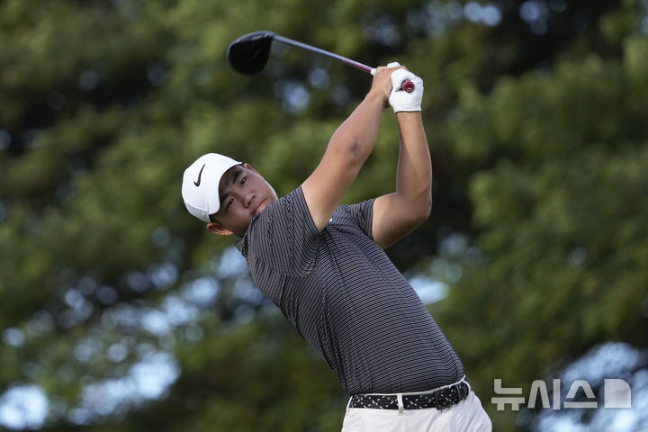 [호놀룰루=AP/뉴시스] 김주형이 11일(현지시각) 미 하와이주 호놀룰루의 와이알레이 컨트리클럽에서 개막한 미국프로골프(PGA) 투어 소니 오픈 인 하와이 3라운드 2번 홀에서 티샷하고 있다. 전날 공동 11위였던 김주형은 중간 합계 3언더파 207타 공동 63위로 내려앉았다. 2025.01.12.