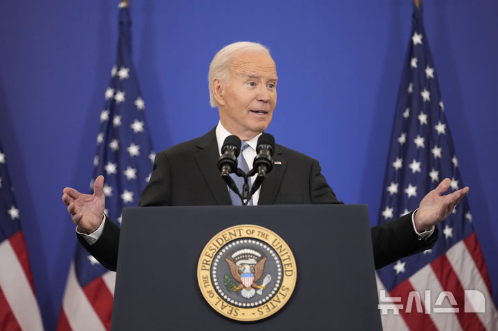 [워싱턴=AP/뉴시스] 조 바이든 미국 대통령이 13일(현지 시간) 워싱턴 국무부에서 외교정책에 대해 연설하고 있다. 퇴임을 일주일 앞둔 바이든 대통령은 외교 성과를 자평하면서 미국은 더 강해지고 경쟁국들은 약해졌다고 말했다. 2025.01.14.