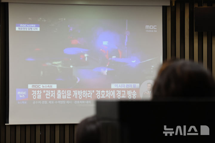 [서울=뉴시스] 권창회 기자 = 윤석열 대통령에 대한 2차 체포영장 집행이 시작된 15일 오전 서울 여의도 국회에서 열린 비공개 비상의원총회에서 더불어민주당 의원들이 관련 뉴스를 시청하고 있다. 2025.01.15. [email protected]