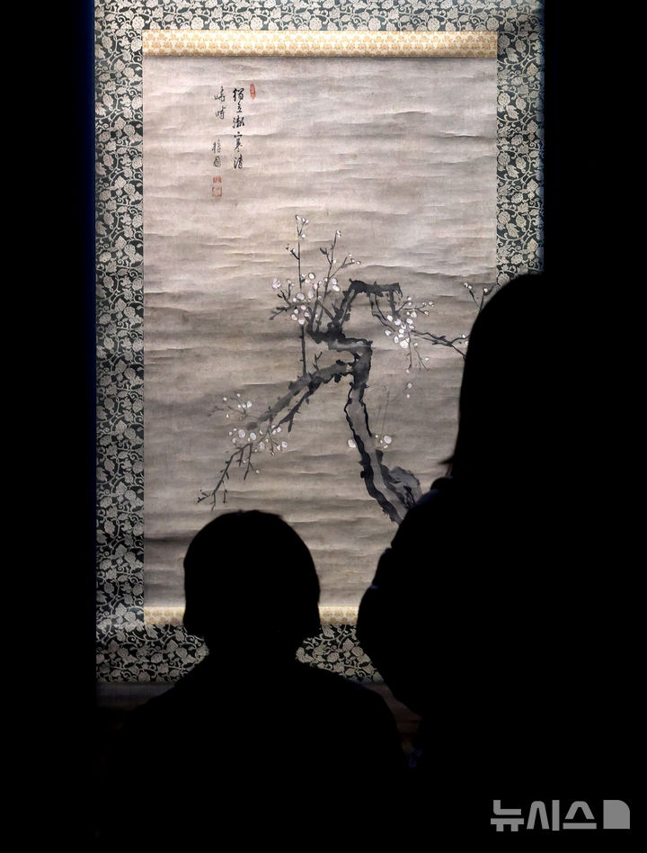 [대구=뉴시스] 이무열 기자 = 16일 대구 수성구 대구간송미술관 상설전시를 찾은 시민들이 단원 김홍도의 백매를 관람하고 있다.