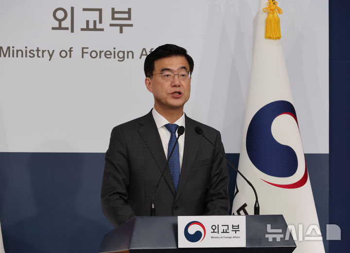 [서울=뉴시스] 김명원 기자 = 이재웅 외교부 대변인이 16일 서울 종로구 외교부에서 현안 관련 정례브리핑을 하고 있다. 이재웅 대변인은 "가자지구에서의 휴전 및 인질 석방 협상이 타결된 것을 환영하며, 동 협상 타결에 큰 역할을 한 미국, 카타르, 이집트의 외교적 노력을 높이 평가한다"고 밝혔다. 2025.01.16. [email protected]