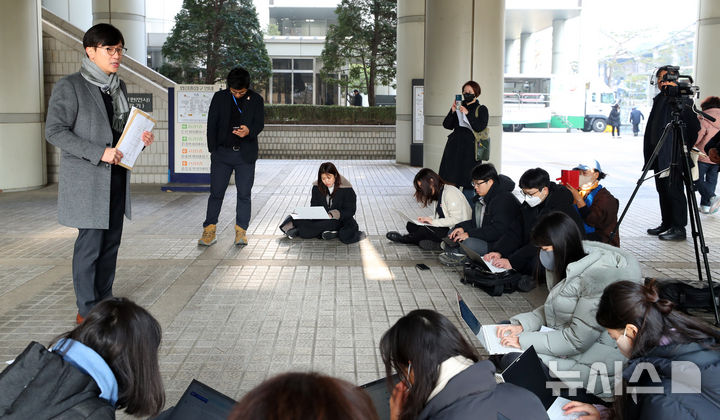 [서울=뉴시스] 김혜진 기자 = 21일 오후 서울 서초구 서울중앙지방법원에서 가수 이승환의 법적대리인 임재성 변호사가 언론브리핑을 하고 있다.