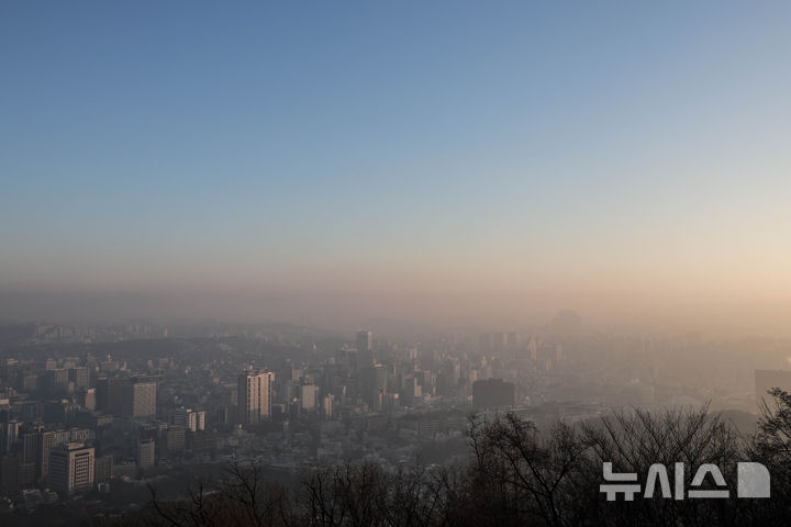 [서울=뉴시스] 정병혁 기자 = 고농도 미세먼지가 도심을 덮친 가운데 23일 서울 중구 남산에서 바라본 서울 하늘에 미세먼지 띠가 보이고 있다. 2025.01.23. [email protected]