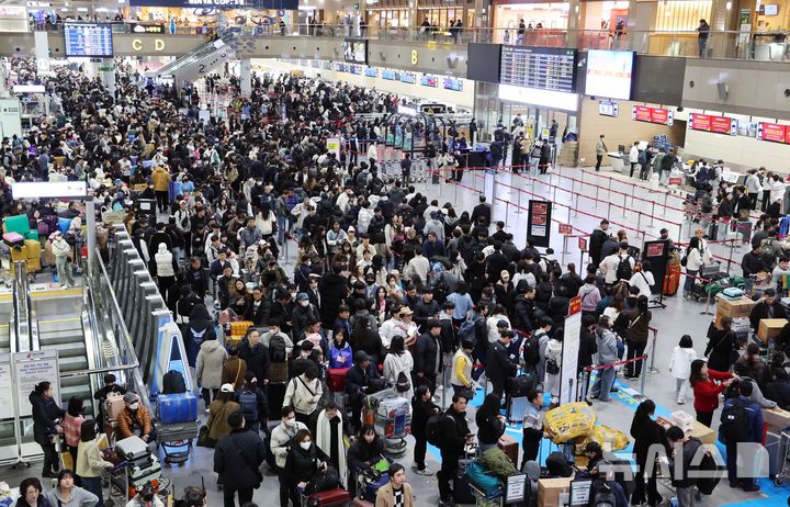 오는 24일부터 내달 2일까지 열흘간 김해공항에서 15만8000명이 국제선 항공편을 이용하는 등 전국 국제공항을 통해 총 134만여 명이 출국할 것으로 전망됐다. 2025.01.23. [email protected]