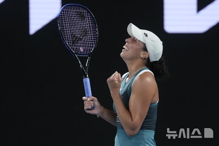 [멜버른=AP/뉴시스] 매디슨 키스(14위·미국)가 23일(현지 시간) 호주 멜버른의 로드 레이버 아레나에서 열린 호주오픈 여자 단식 4강전에서 이가 시비옹테크(2위·폴란드)를 꺾고 환호하고 있다. 키스가 2-1(5-7 6-1 7-6)로 역전승하고 결승에 올라 3연패를 노리는 아리나 사발렌카(1위·벨라루스)와 우승을 다툰다. 2025.01.24.