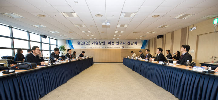 [서울=뉴시스] 유상임 과학기술정보통신부 장관이 24일 오전 서울 종로구 광화문교보빌딩 국가과학기술자문회의 대회의실에서 열린 '출연(연) 기술창업 이전 연구자 간담회' 에서 발언하고 있다. (사진=과학기술정보통신부 제공) 2025.01.24. [email protected] *재판매 및 DB 금지