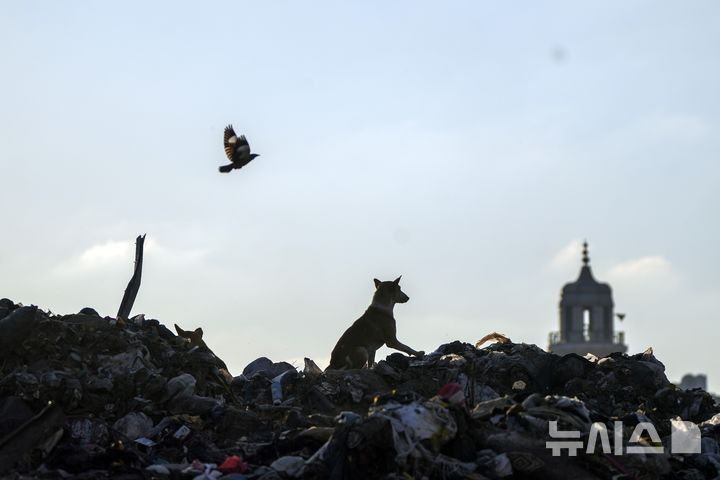 [가자시티=AP/뉴시스] 4일(현지 시간) 가자지구 가자시티에서 개 한 마리가 쓰레기 더미를 뒤지고 있다. 쓰레기 수거가 이루어지지 않아 주민들이 공개된 곳에 쓰레기를 버리고 있다. 2025.02.05.