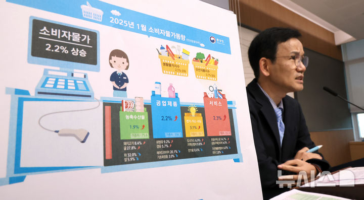 [세종=뉴시스] 강종민 기자 = 이두원 통계청 경제동향통계심의관이 5일 세종시 정부세종청사에서 2025년 1월 소비자물가동향을 발표하고 있다.
