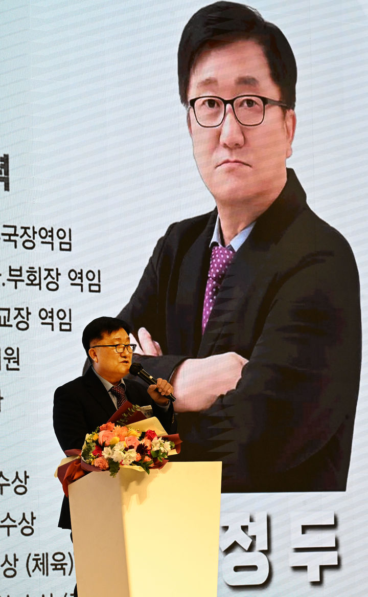 [서울=뉴시스] 5일 서울 강남 엘리에나호텔에서 열린 2025년 서울시산악연맹 신년인사회 및 제24대 서울시산악연맹회장 취임식에서 송정두 신임 회장이 인사말을 하고 있다. (사진=서울시산악연맹 제공) 2025.02.05. [email protected]