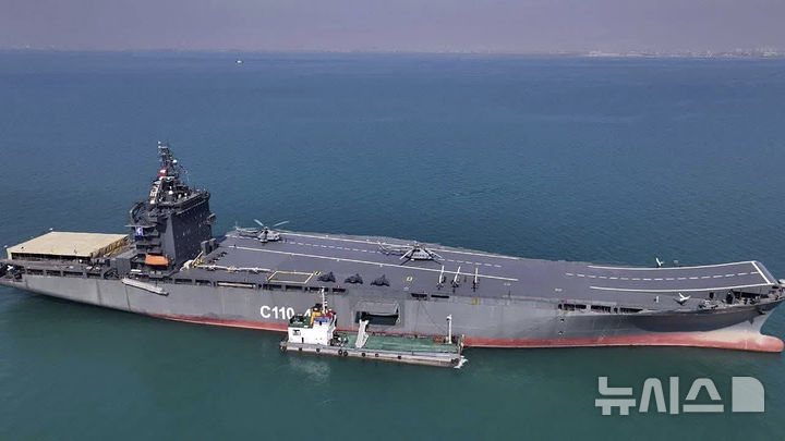 [테헤란(이란)=AP/뉴시스]이란 혁명수비대 세파뉴스가 제공한 사진 속에 6일 진수된 이란 최초의 드론 운반 전함 '샤히드 바게리'호가 페르시아만에 떠 있다. 이란은 상업용 선박을 개조한 이 전함이 본토에서 멀리 떨어진 바다에서도 작선을 수행할 수 있다고 밝혔다. 2025.02.06.