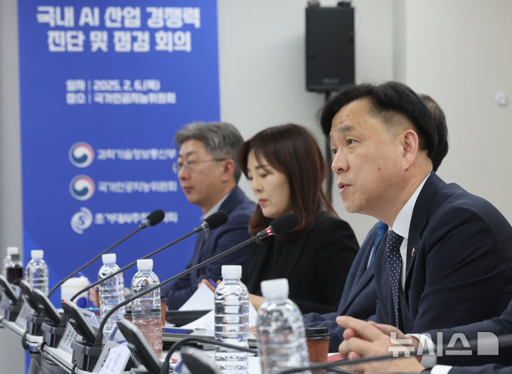 [서울=뉴시스] 김금보 기자 = 강도현 과학기술정보통신부 2차관이 6일 오전 서울 중구 국가인공지능위원회에서 열린 '국내 AI 산업 경쟁력 진단 및 점검 회의'에서 발언을 하고 있다. 2025.02.06. [email protected]